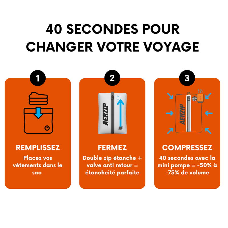 Marie Août 2025Acheteur VérifiéSuper gain de placeJ’ai pu caser une semaine de vêtements dans ma valise cabine, incroyable. Facile à utiliser et solide.